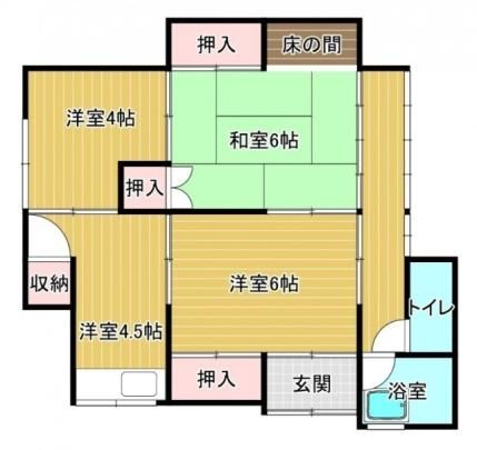 | 築年月 | 1962年4月 | 間取り | 3DK( 洋室6畳/洋室6畳/和室4畳 ) | 専有面積 | 49.59m2 |