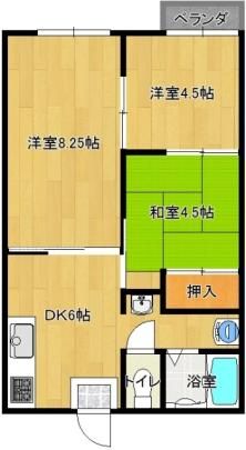 | 築年月 | 1987年1月 | 間取り | 3DK( DK6畳/洋室4.5畳/洋室8.25畳/和室4.5畳 ) | 専有面積 | 41.9m2 |